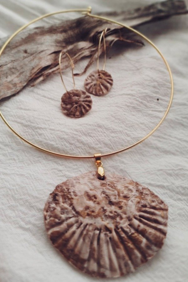 Set de aros (o collar) en packaging hecho a base de materiales reciclados, listo para regalar o regalarte.